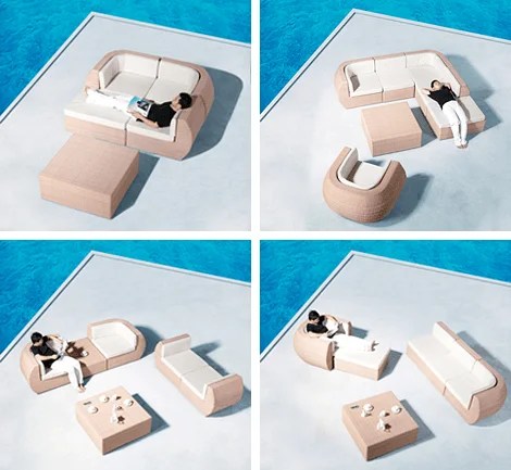 One of the most amazing sofa designs out there with an added functionality. This sofa comes in 4 separate pieces that you can join to form a complete cozy sofa or you can simply put them in pairs of twos to get two individual sofas.