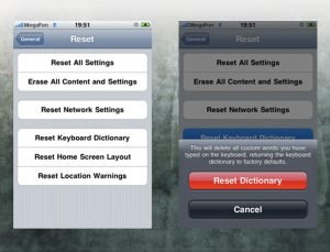 This is one of the many useful iPhone tricks where you can correct any mistakes made in the dictionary department. If you accidently entered a wrong word in the dictionary, you cannot undo your mistake. You will have to reset your dictionary settings back to factory settings. First enter settings and select “General.” Then you need to scroll down until the “Reset” option shows. Select “Reset Keyboard Dictionary” to start from scratch.